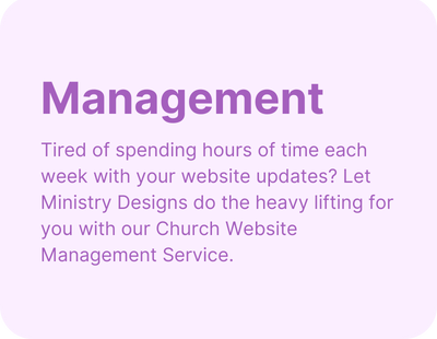 Let us do the hard work for you! Ministry Designs' team of expert designers will build your church's website for you using your current content. Have a better looking website faster and easier!